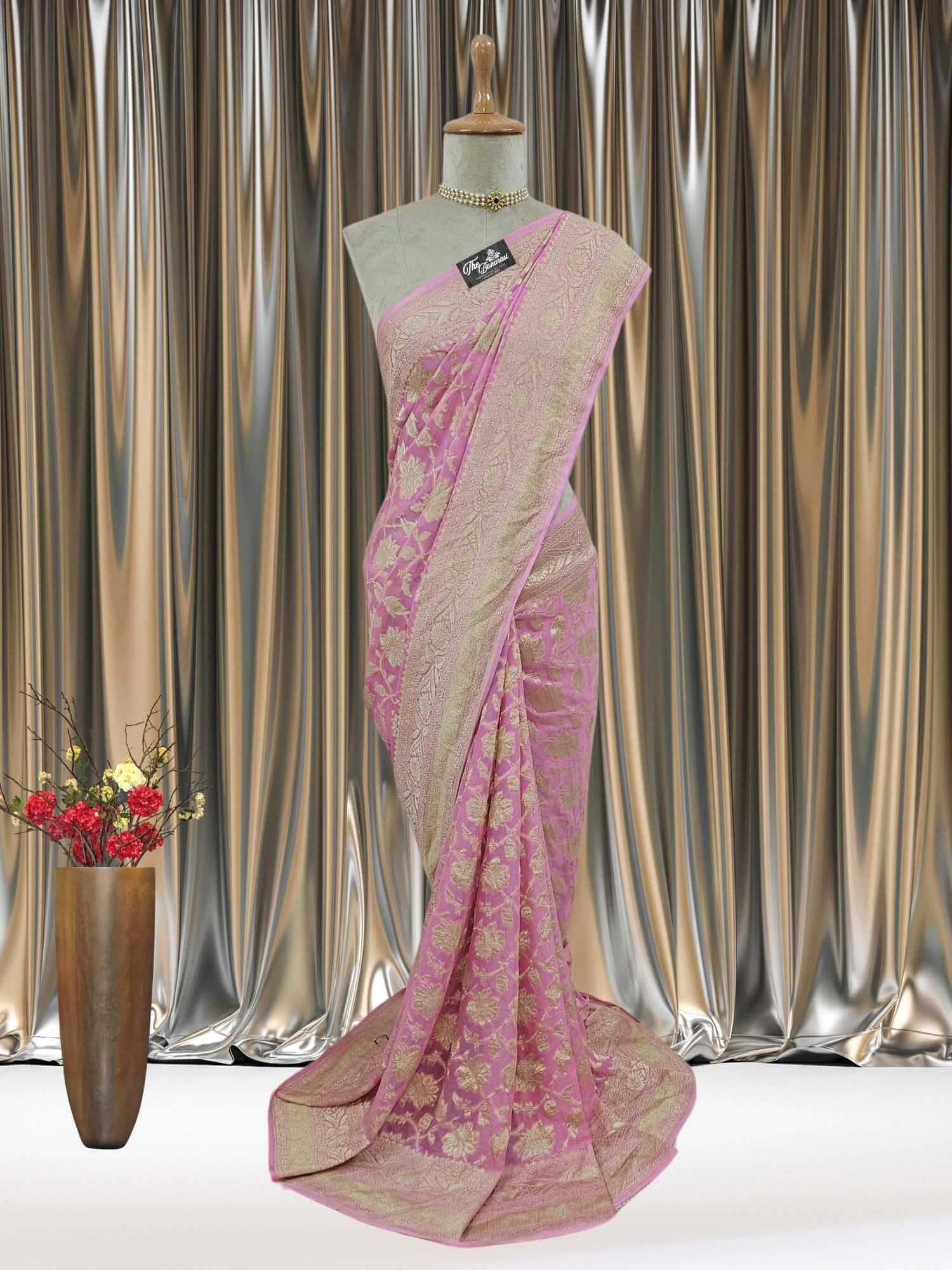 Baby Pink Khaddi Georgette Water Zari Banarasi Handloom Saree