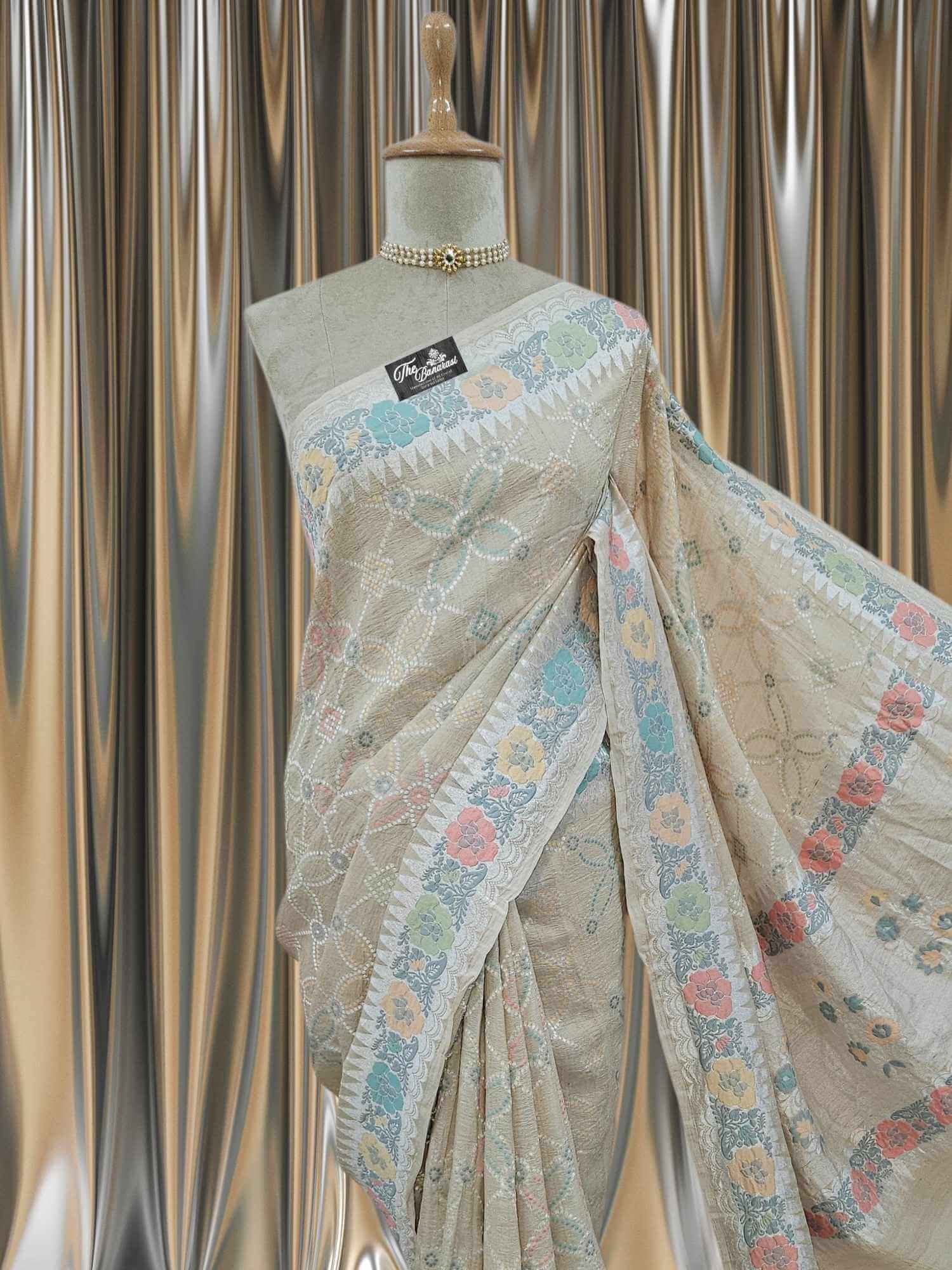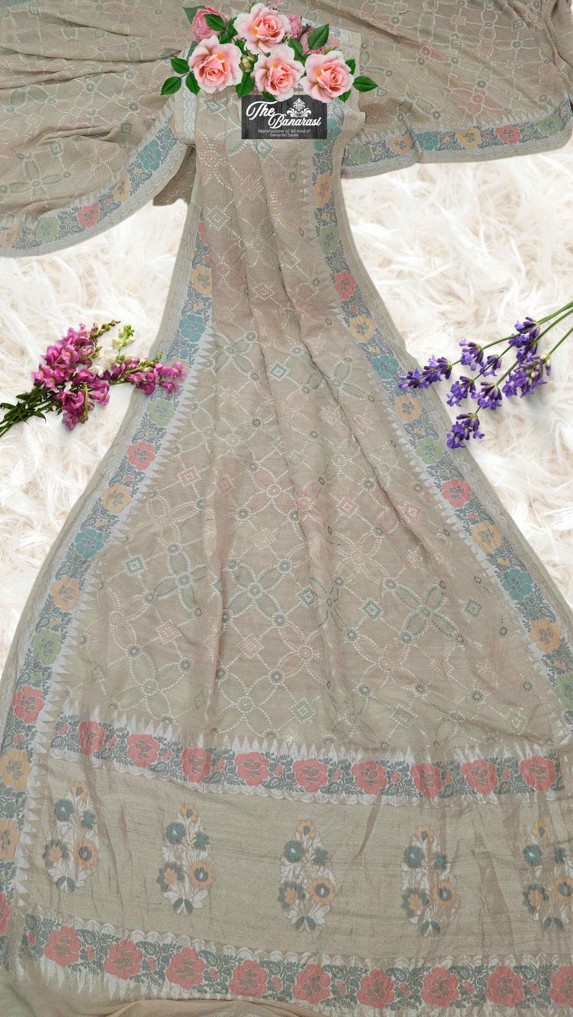 Beige Color Pure Tussar Georgette Meenakari Design Banarasi Handloom Saree