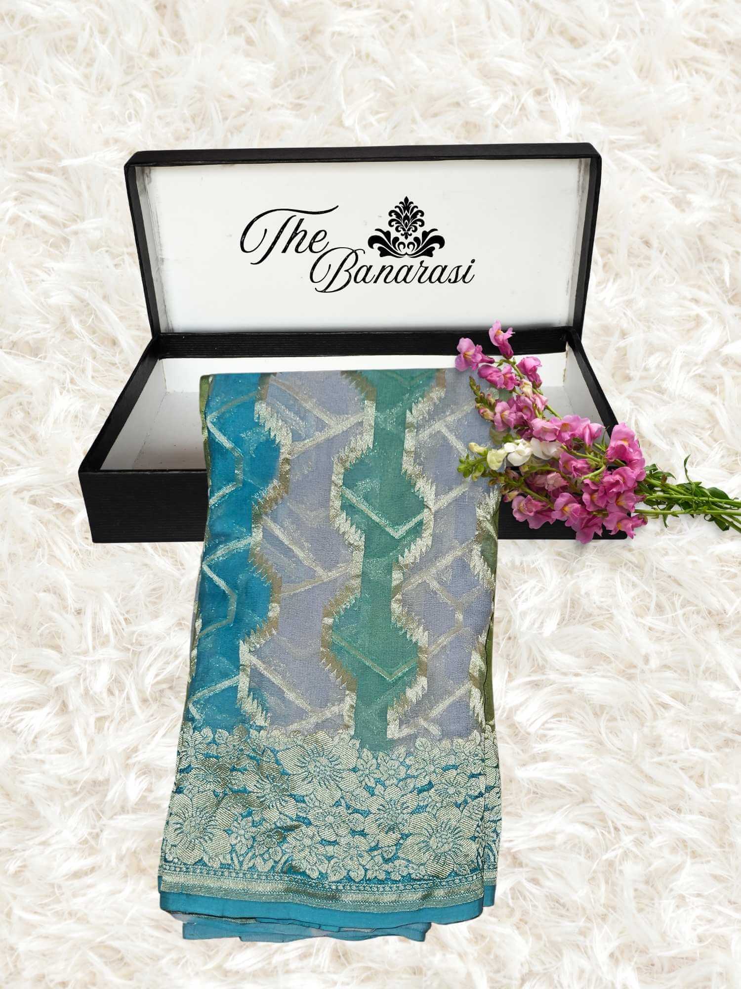 Colorful Khaddi Georgette Water Zari Banarasi Handloom Saree