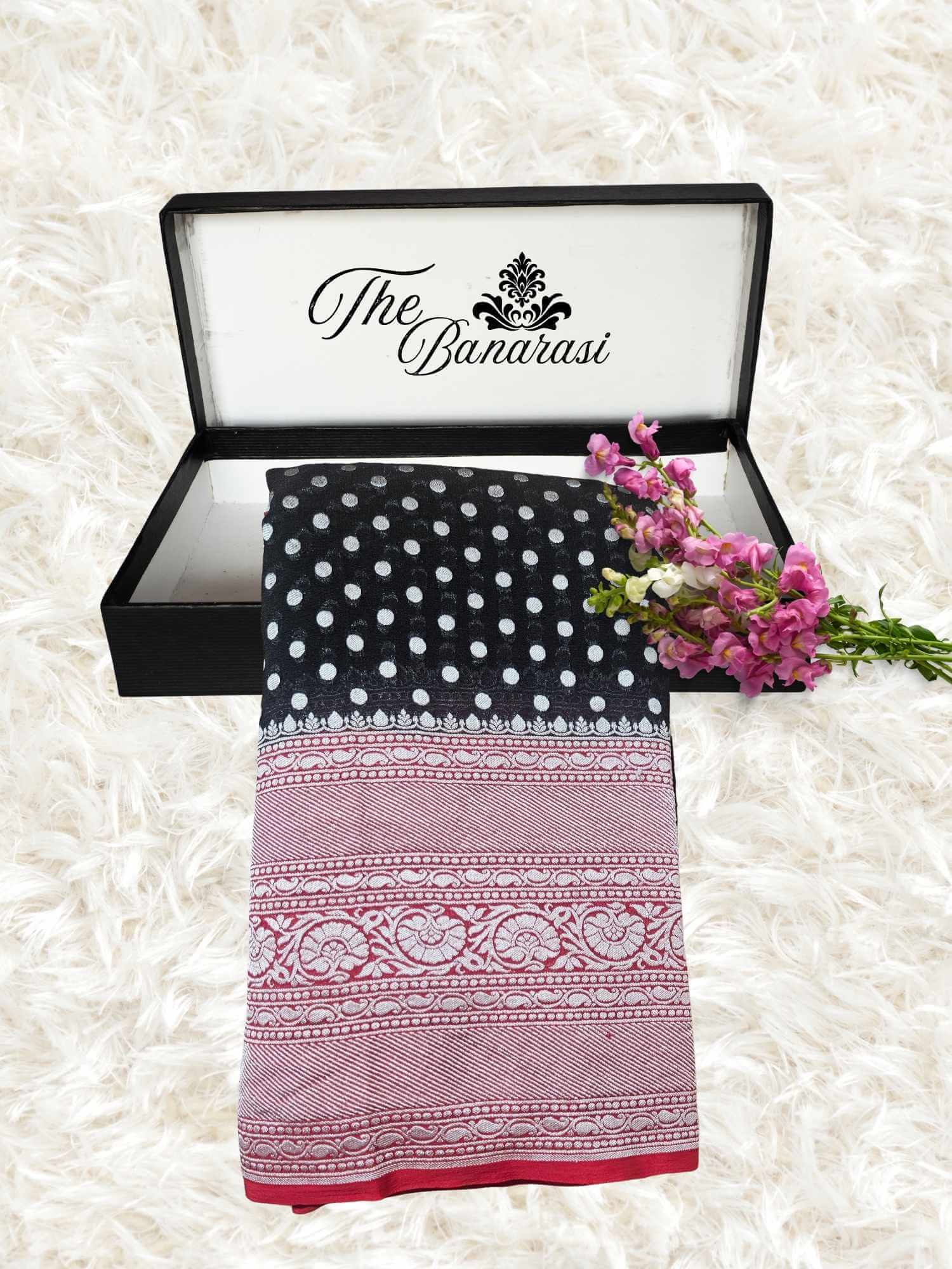 We use the traditional handloom weaving technique, due to the slow or careful process, it takes a few days or a week to complete the saree but using this handwoven technique, our artisans put in a lot of effort to create a beautiful Banarasi saree.