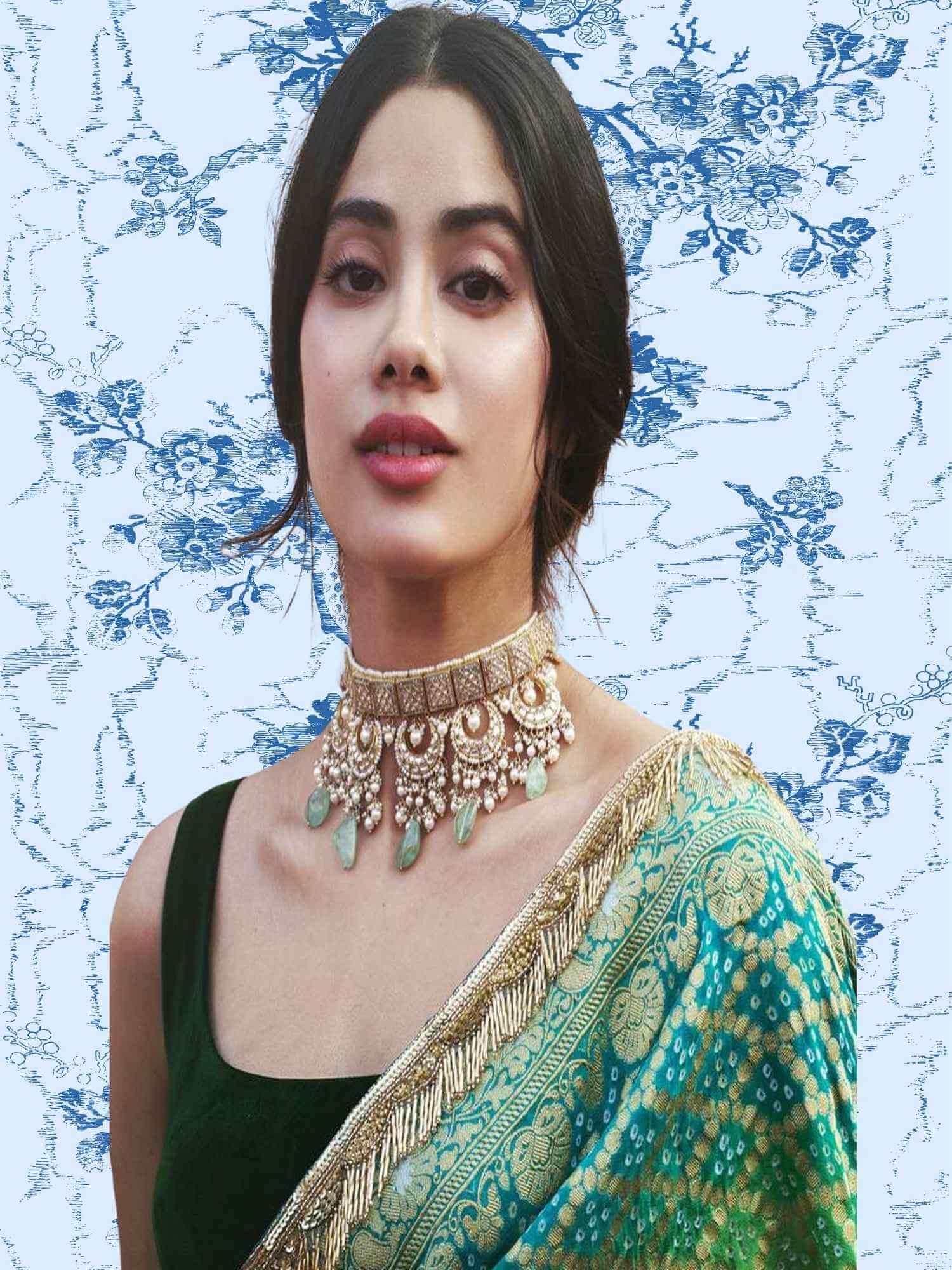 Green Khaddi Georgette Water Zari Bandhani Banarasi Handloom Saree Inspired by Janhvi Kapoor