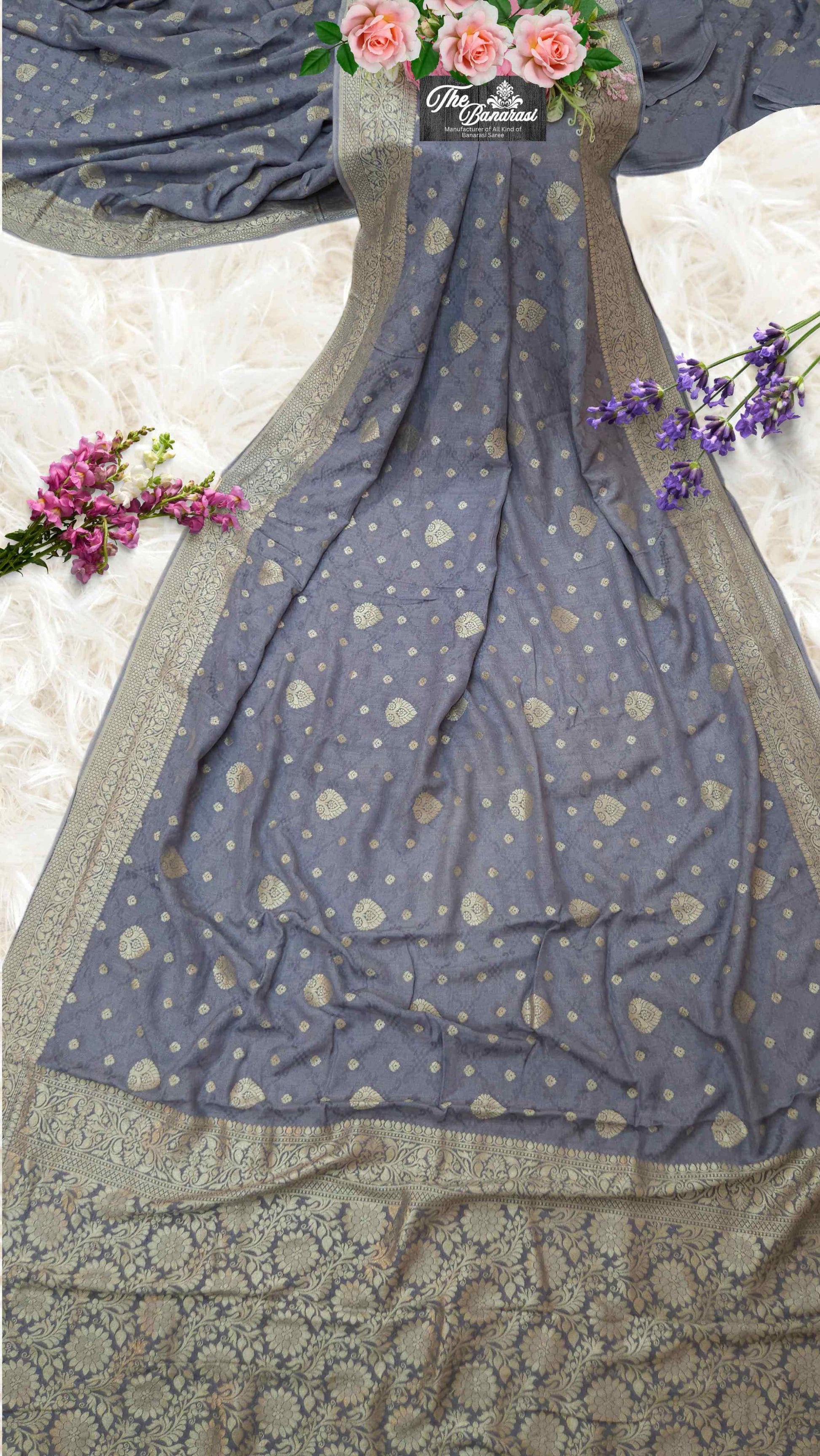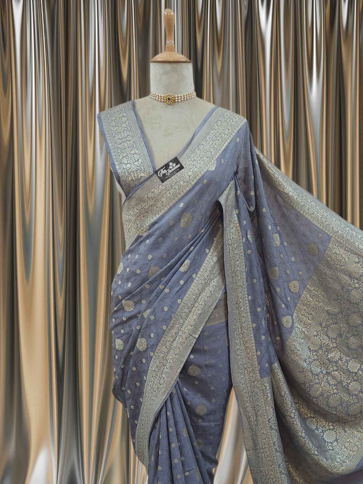 Grey Pure Moonga Georgette Water Zari Banarasi Handloom Saree