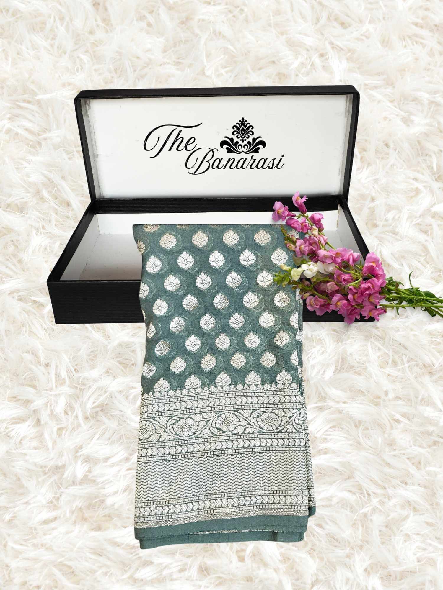 Hunter Green Khaddi Georgette Water Zari Banarasi Handloom Saree