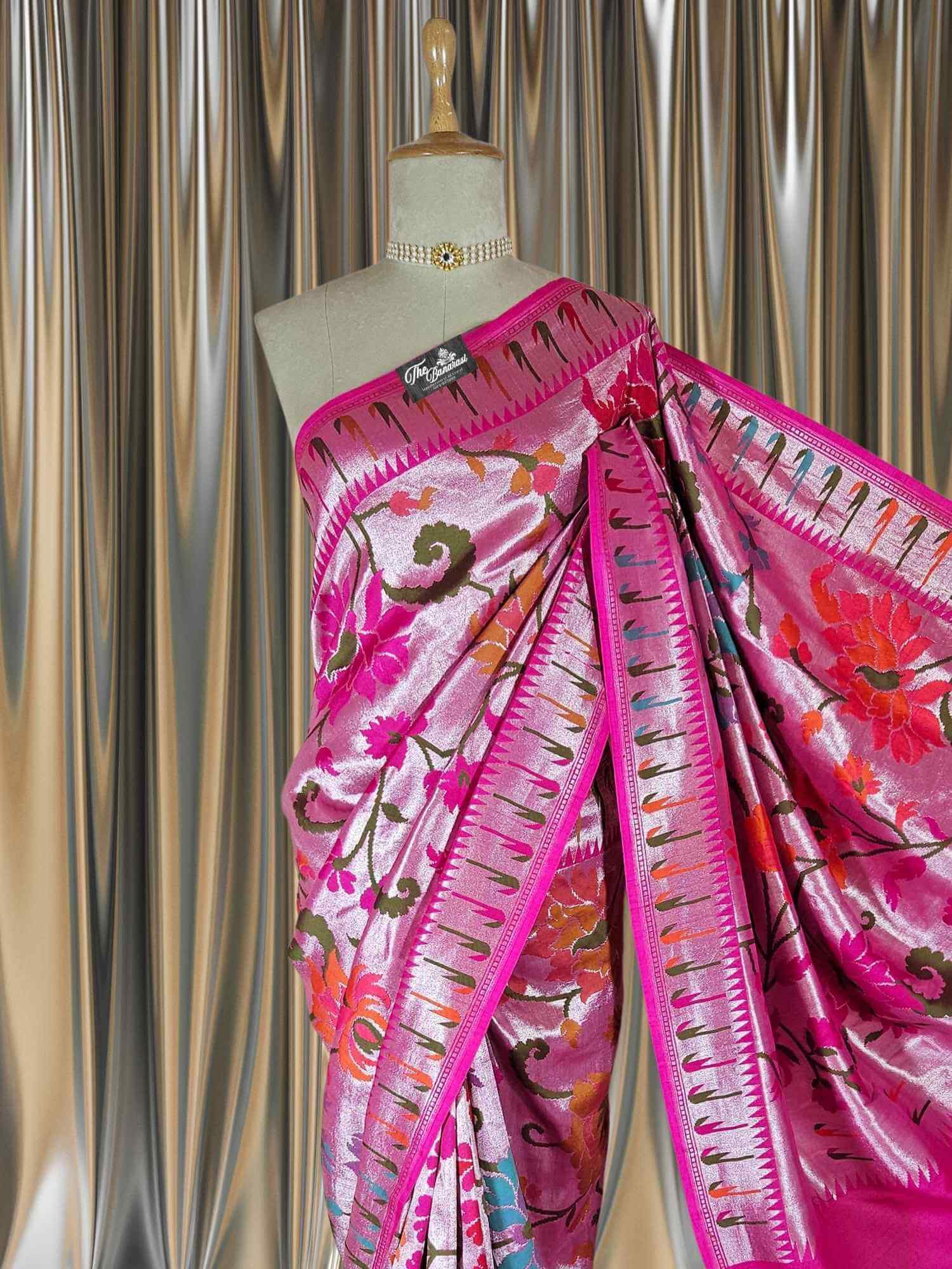 Magenta Pink Pure Tussar Georgette Pathani Design Banarasi Handloom Saree