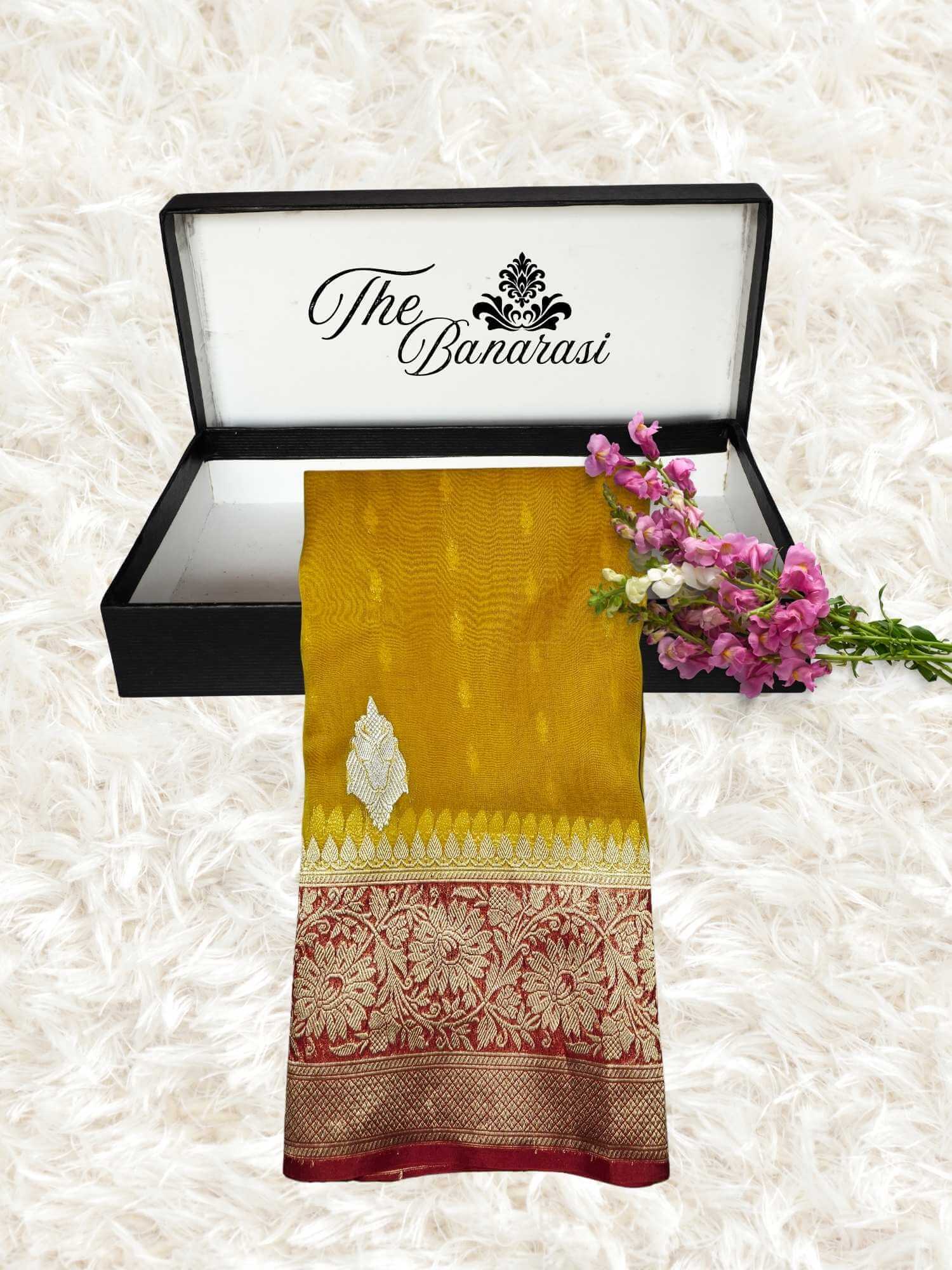 Mimosa Yellow Pure Kora Silk Water Zari Banarasi Handloom Saree
