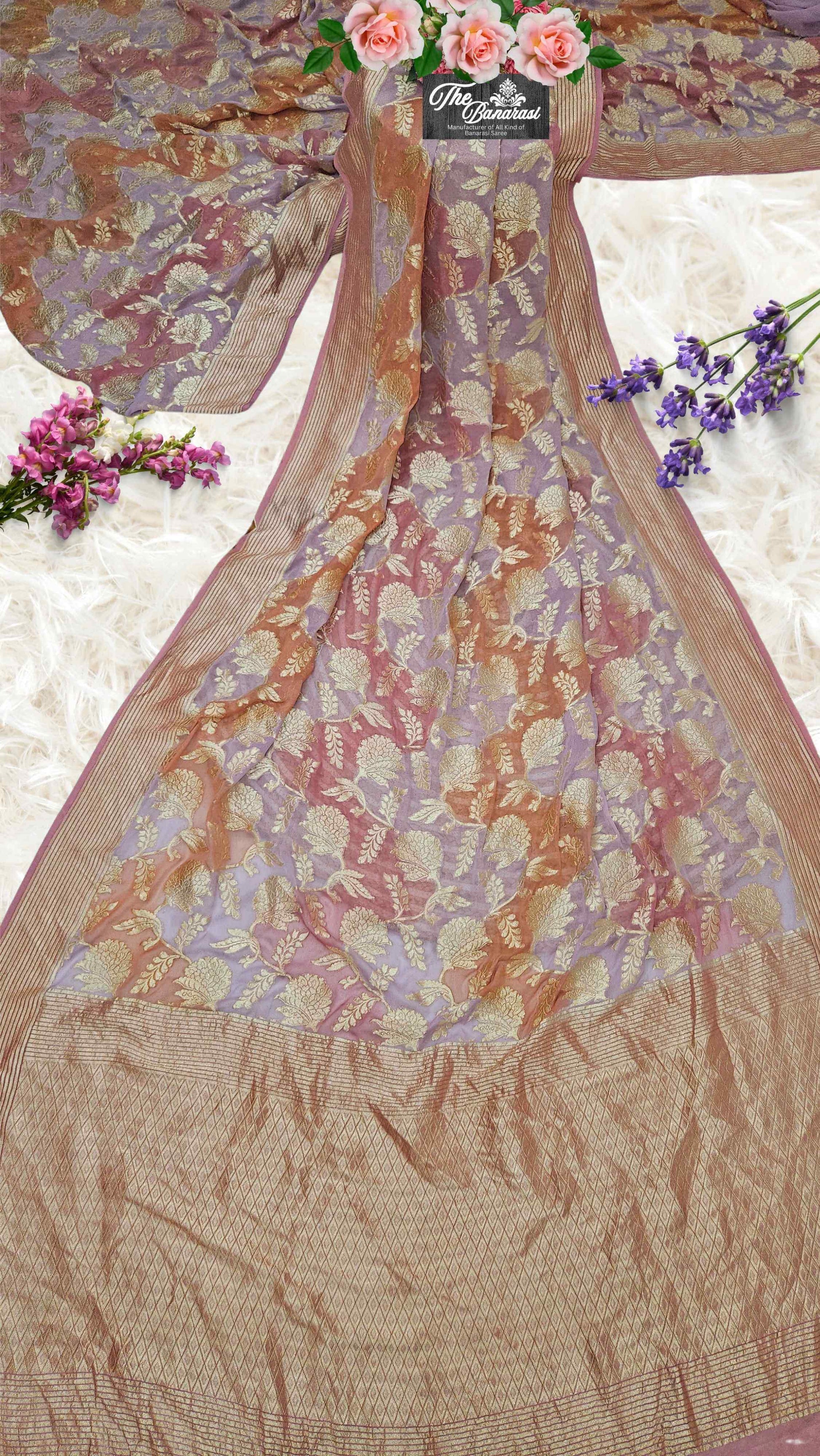 Presenting to you a Multi Color Khaddi Georgette Banarasi Handloom Saree with Water Zari Work. The Georgette Saree has a lightweight and comfortable fabric. The saree is beautifully crafted with water zari work and it is perfect for weddings or festivals.