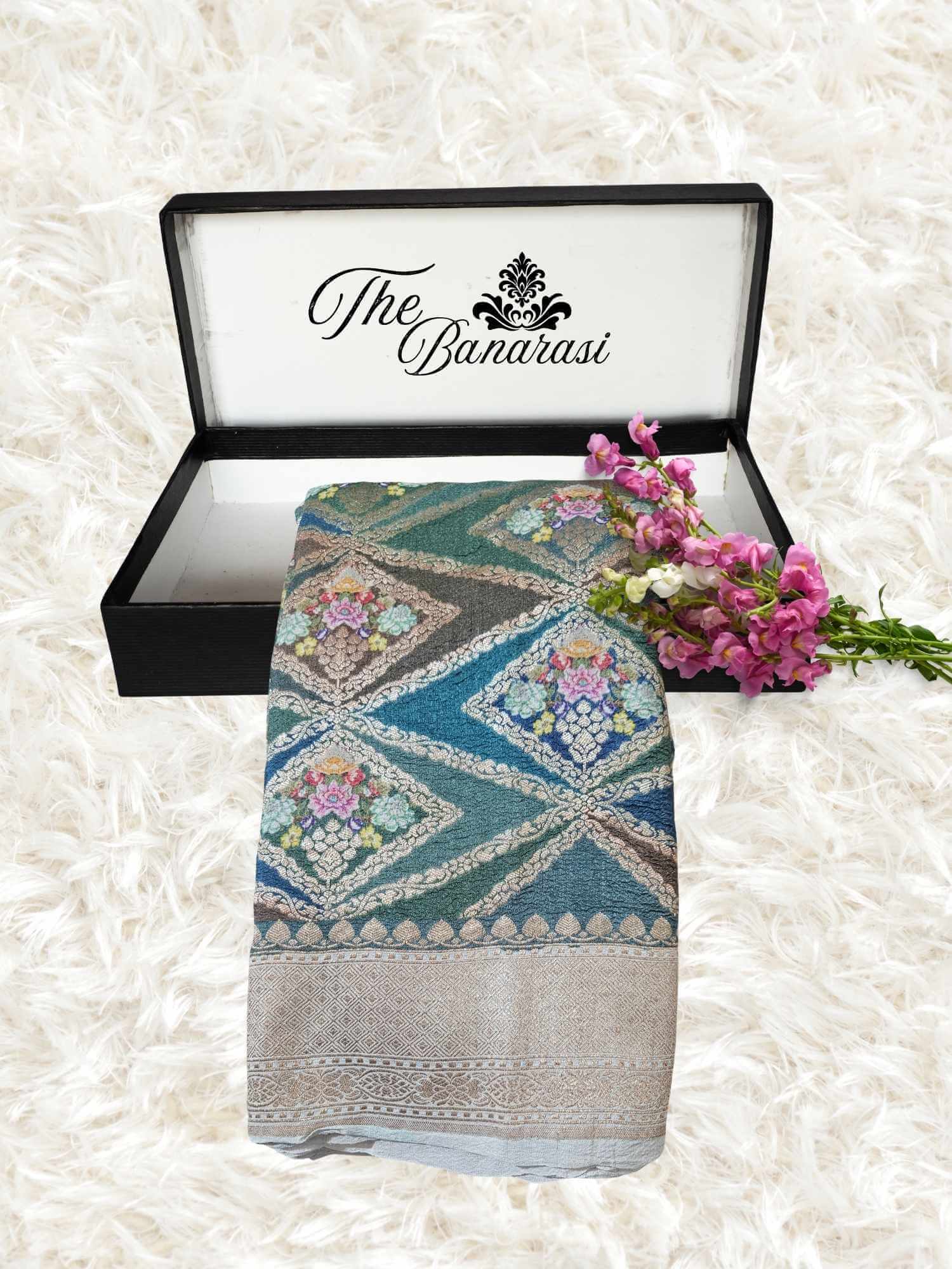 The stunning Multi-hued Tussar Georgette Banarasi Handloom Saree with beautiful Hand Brush Design. Our Tussar is known for its unique texture, rich color, and slightly rustic feel and georgette is known for its seem-sheen and lightweight.