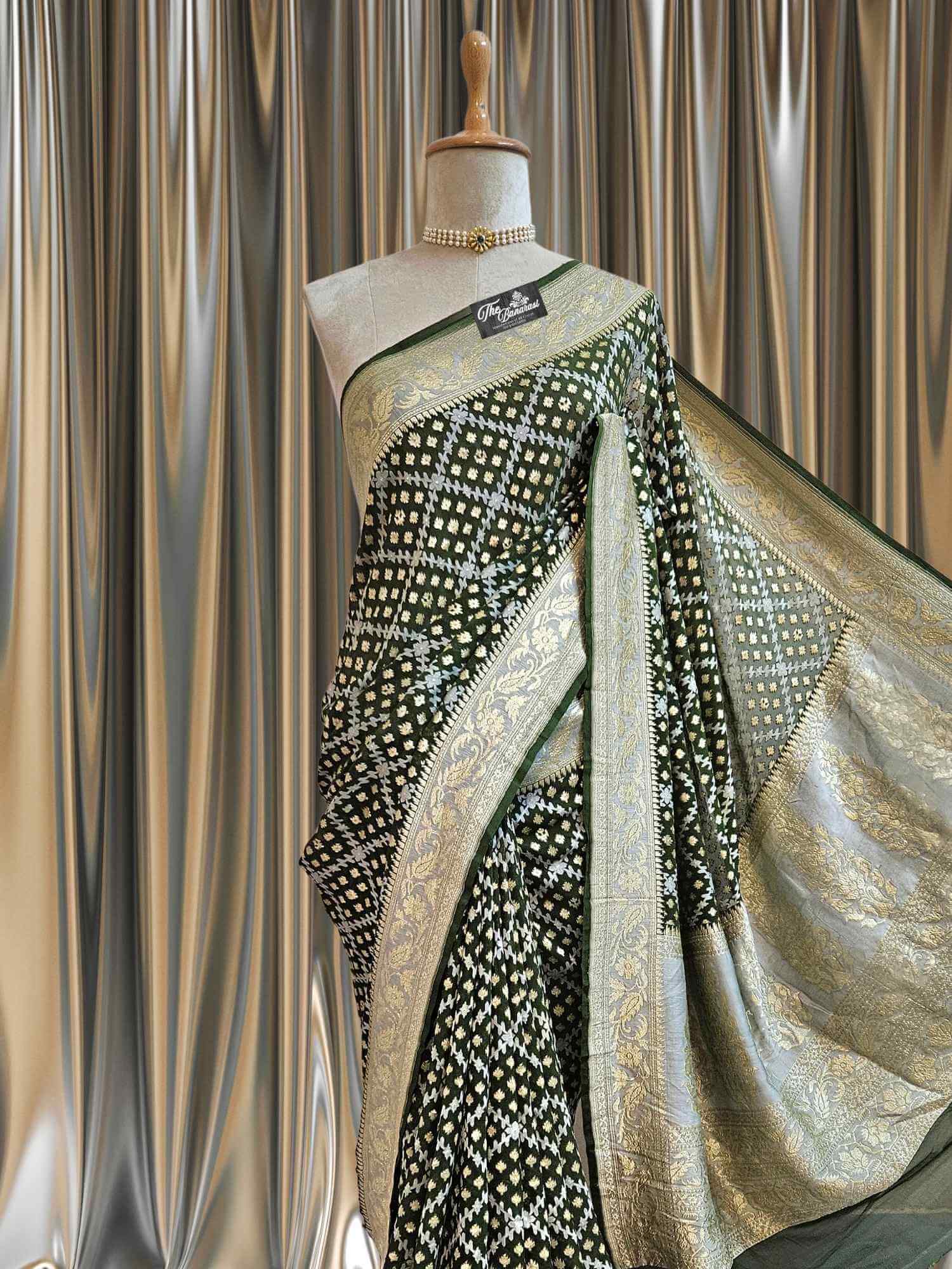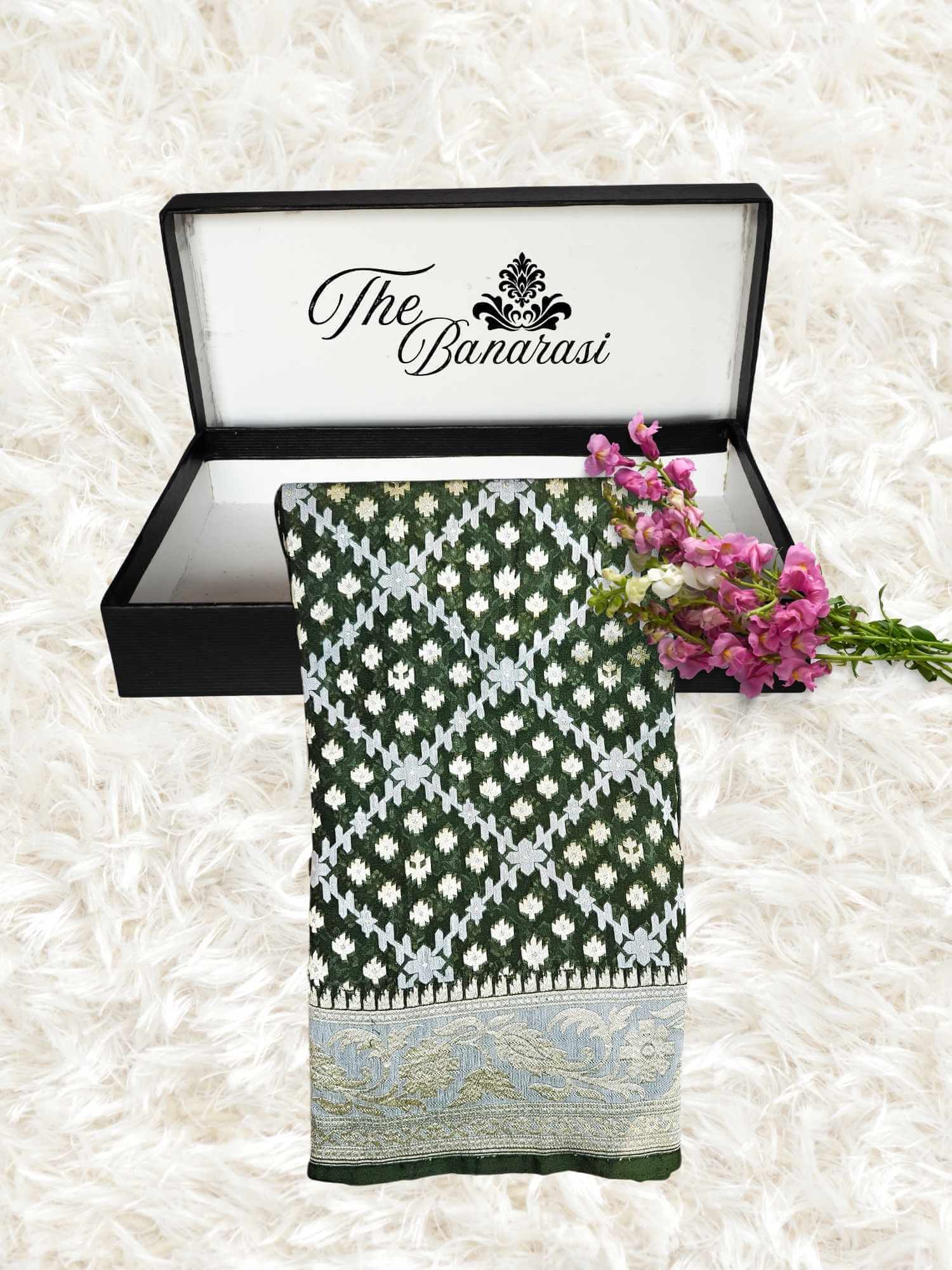 Olive Green Khaddi Georgette Water Zari Banarasi Handloom Saree