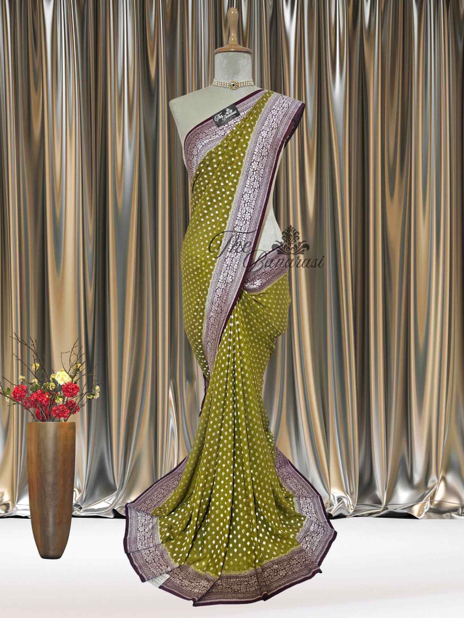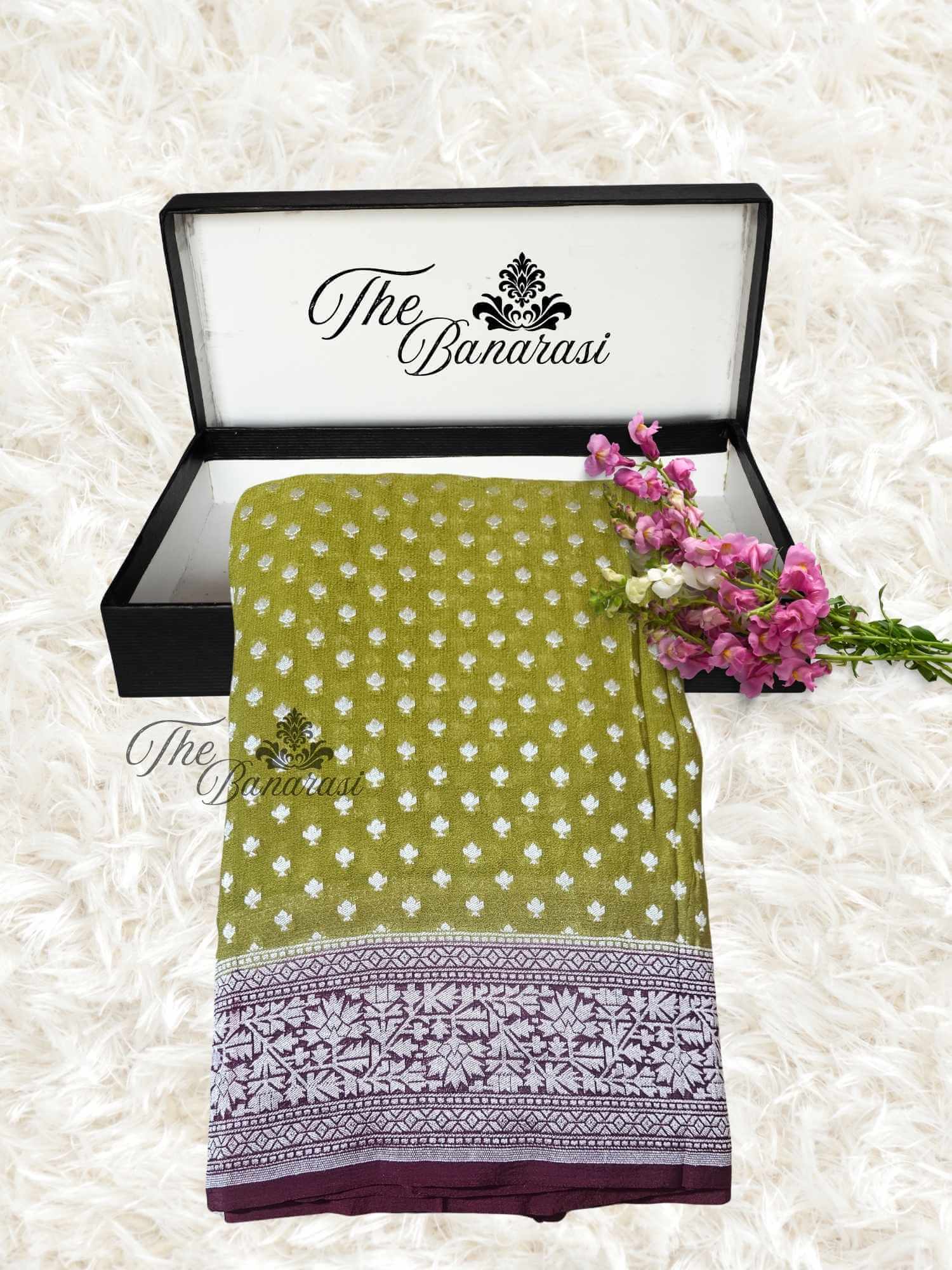 Olive Green Khaddi Georgette Water Zari Banarasi Handloom Saree