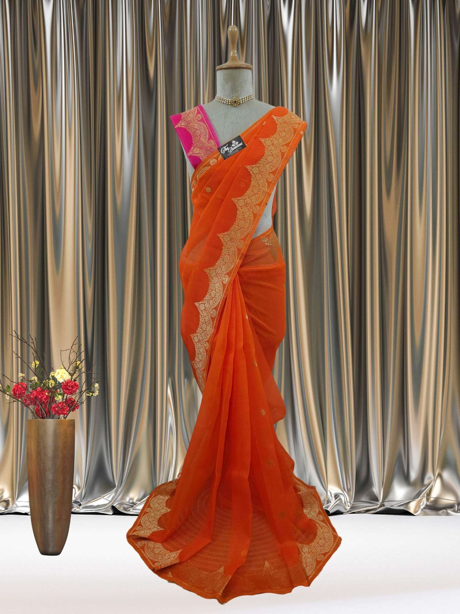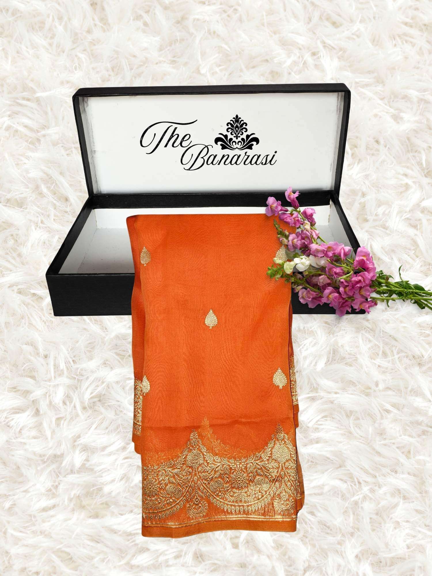 Orange Pure Kora Silk Sona Roopa Banarasi Handloom Saree
