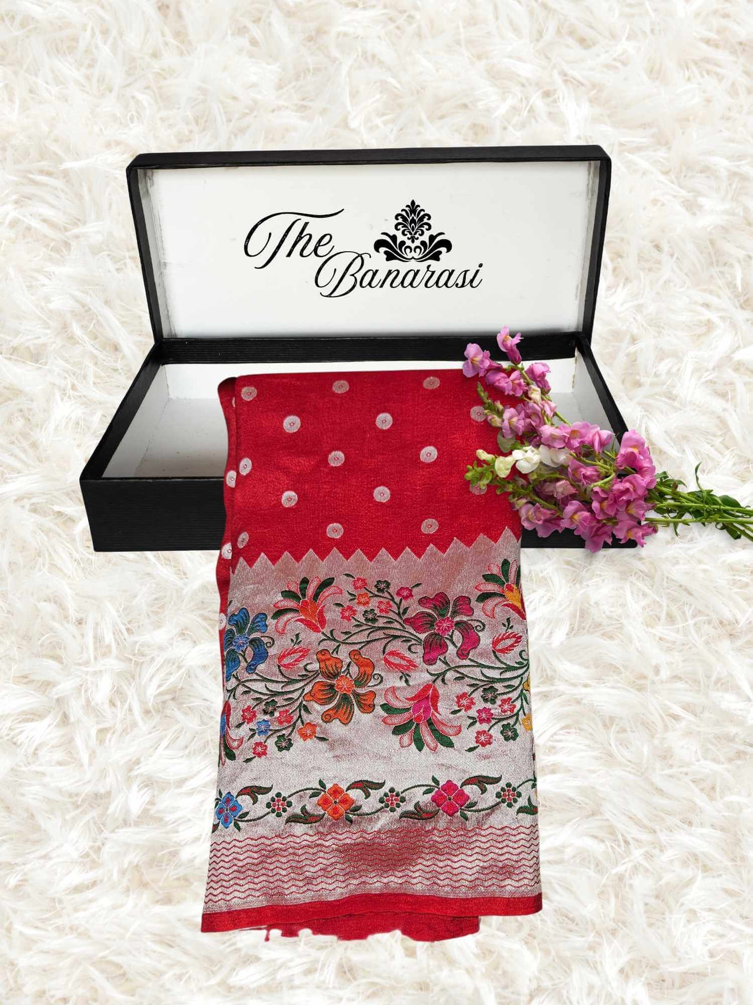 Red Color Pure Tussar Georgette Meenakari Design Banarasi Handloom Saree