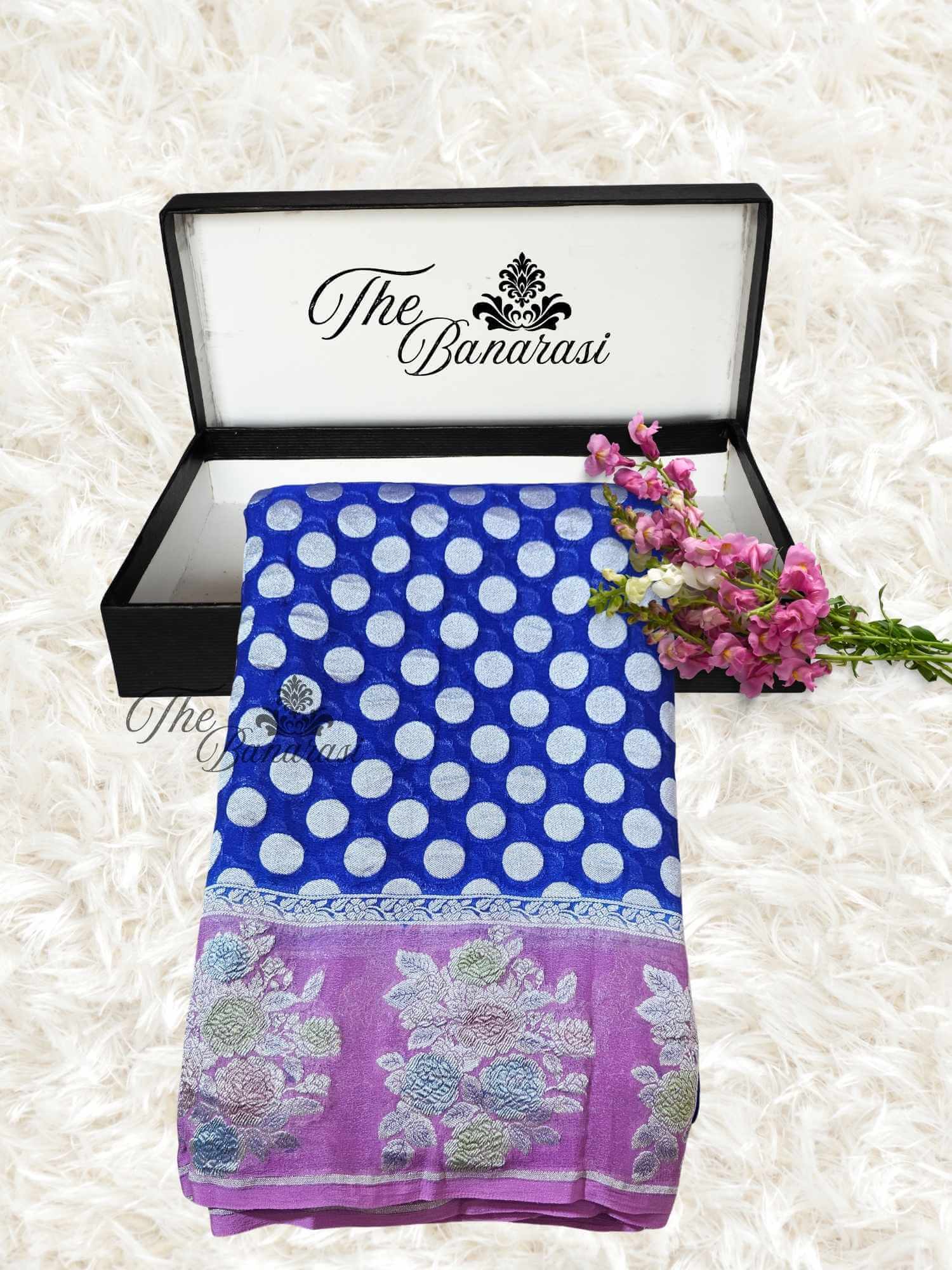 Royal Blue Khaddi Georgette Hand Brush Water Zari Banarasi Handloom Saree