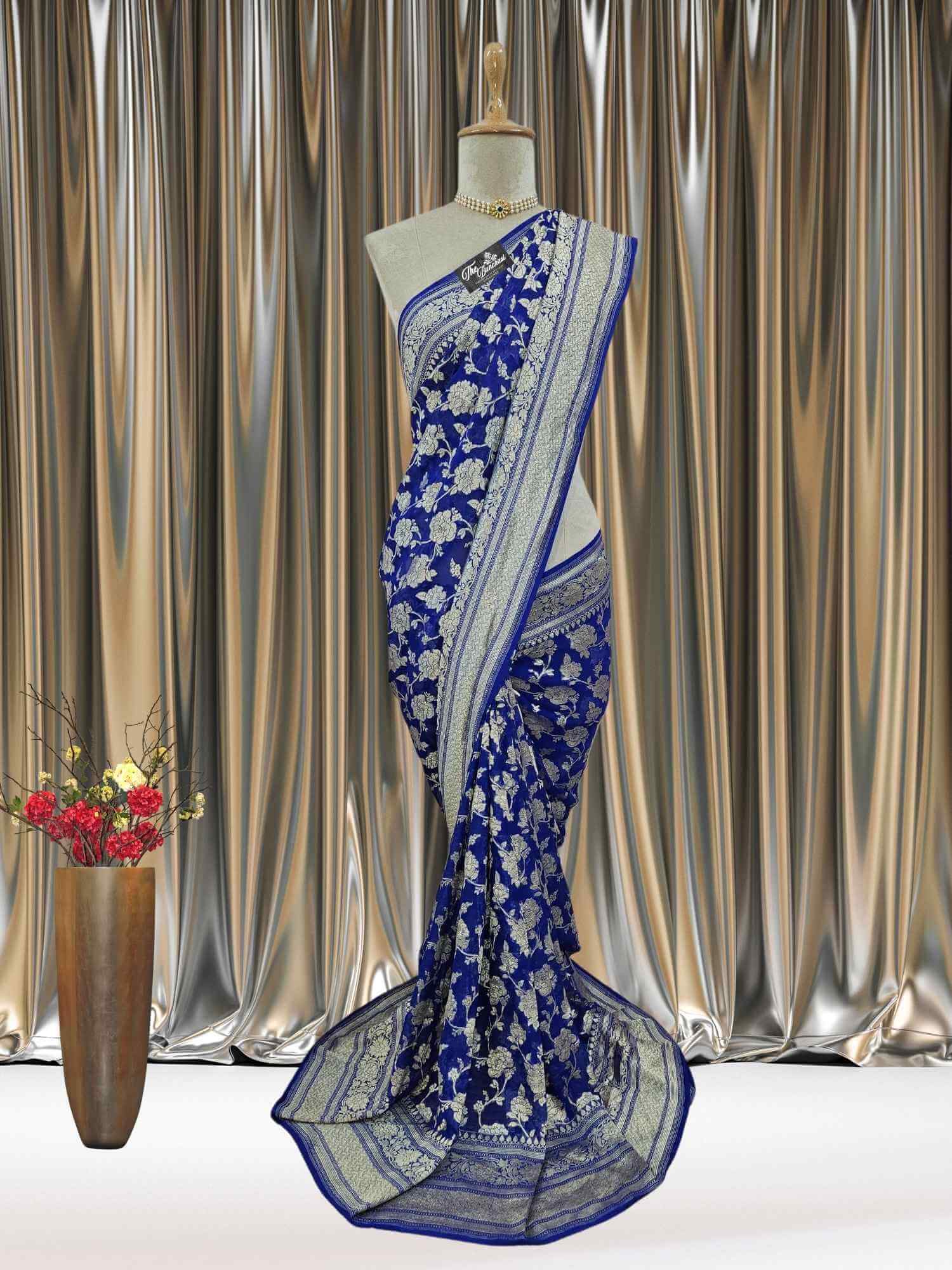 Royal Blue Khaddi Georgette Water Zari Banarasi Handloom Saree