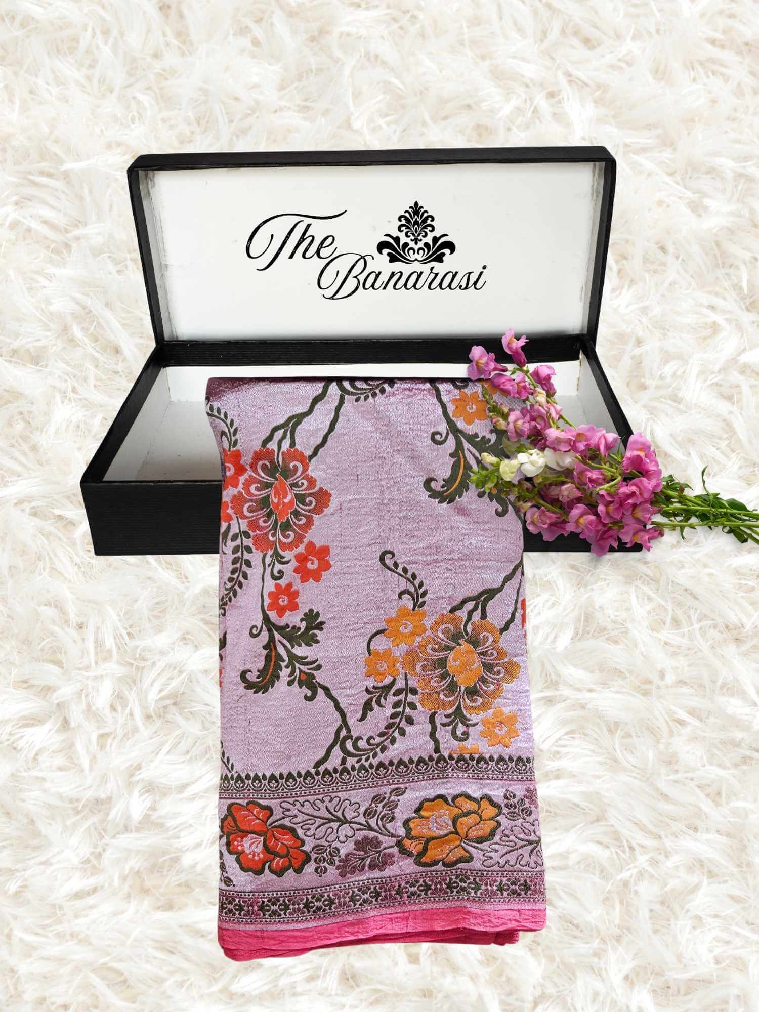Salmon Pink Pure Tussar Georgette Meenakari Design Banarasi Handloom Saree