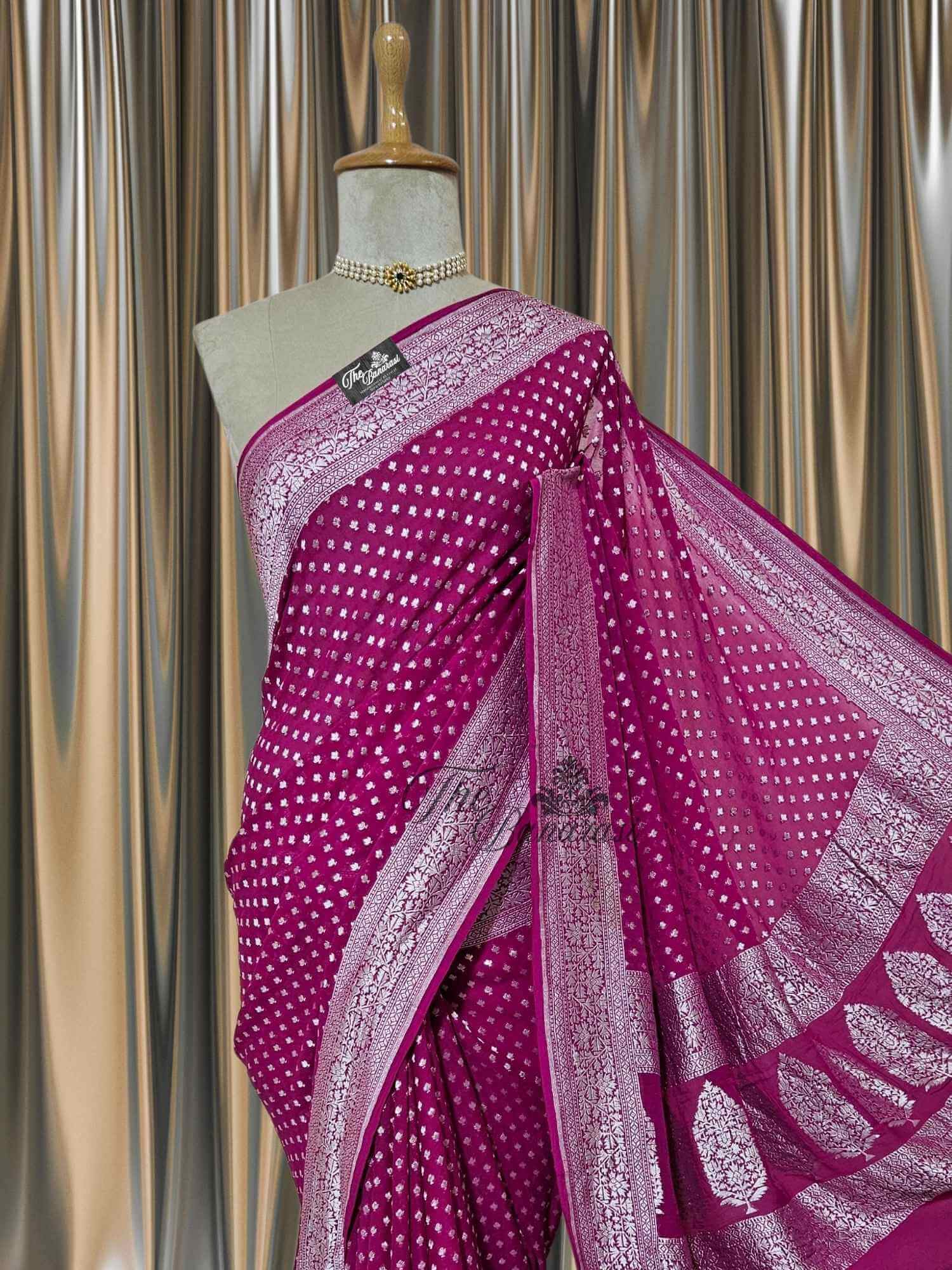 Strawberry Pink Khaddi Georgette Water Zari Banarasi Handloom Saree
